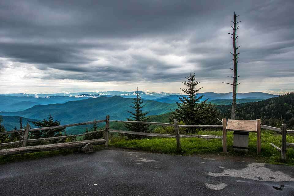 There are so many great views available at Clingmans Dome. The views at Clingmans Dome are even great at the parking lot. Clingmans Dome is the highest point in the Great Smoky Mountains and the highest point in Tennessee.